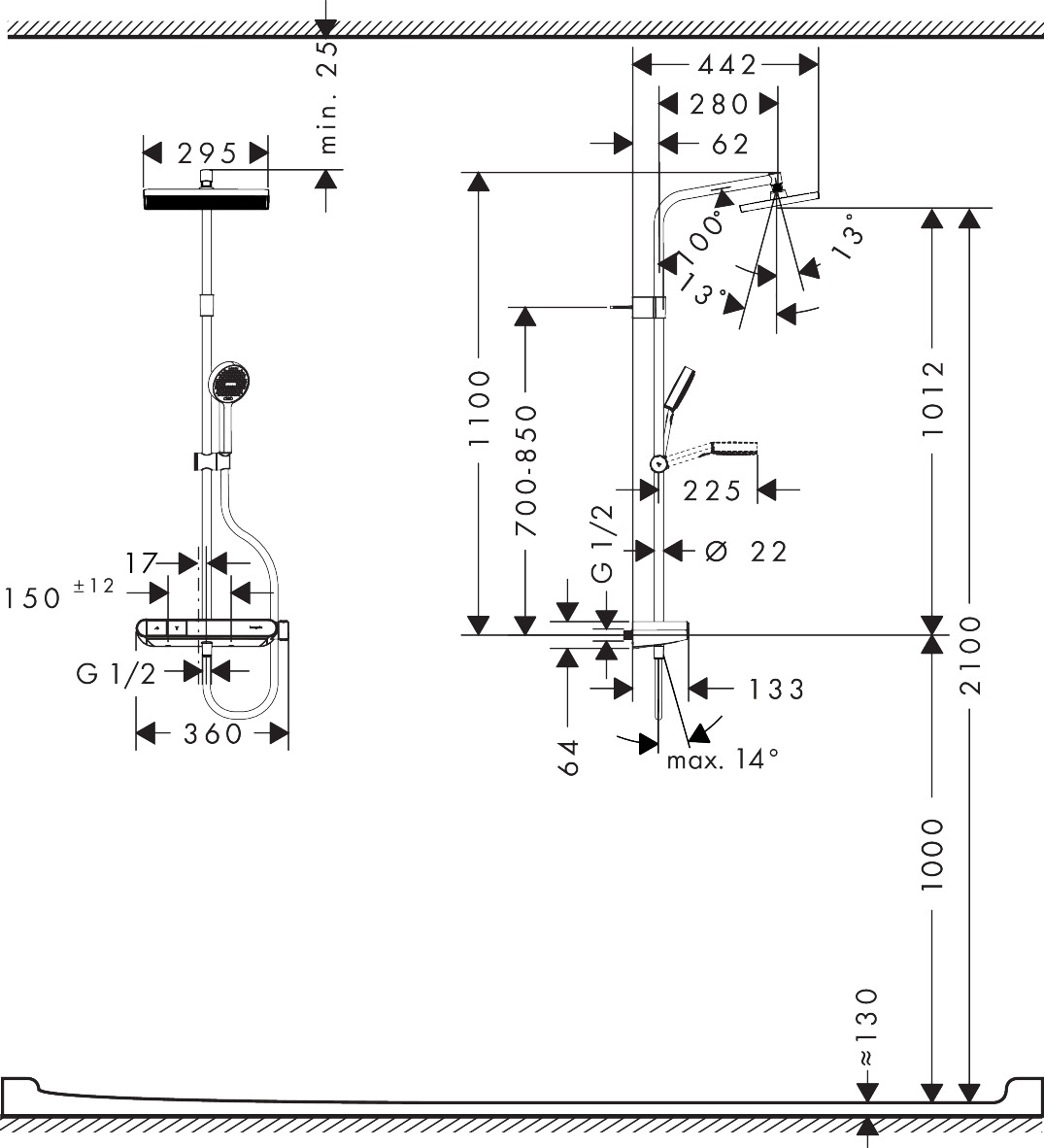- ball-joint: overhead shower angle adjustable